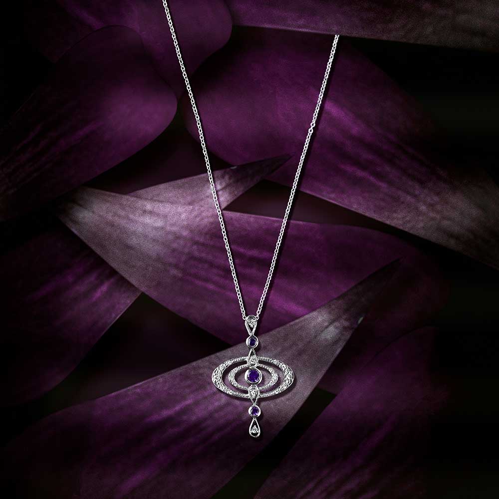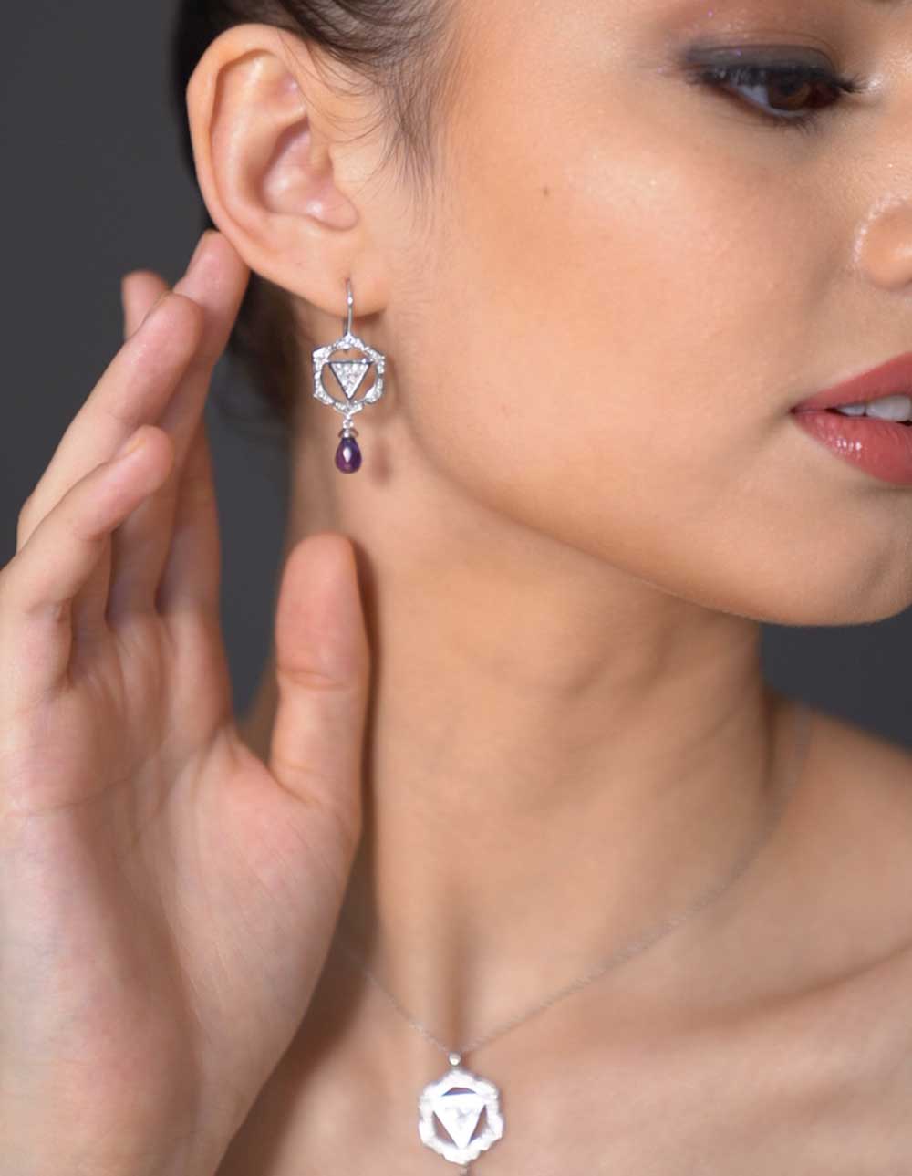 a celebration of modern delicacy, crafted in sterling silver and diamonds. Featuring blue topaz, amethyst, and peridot, each piece captures the gentle breath of color and light, maintaining a clean, contemporary silhouette. Subtle halo settings, sleek droplets, and airy forms define the collection, creating jewelry that feels weightless yet radiant.