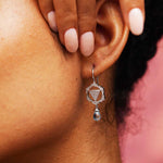 Sterling Silver Solar Earring with I2 white diamonds and Blue Topaz. White Rhodium plated